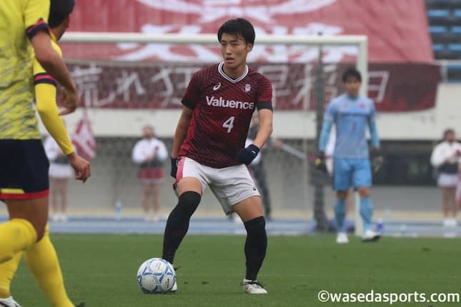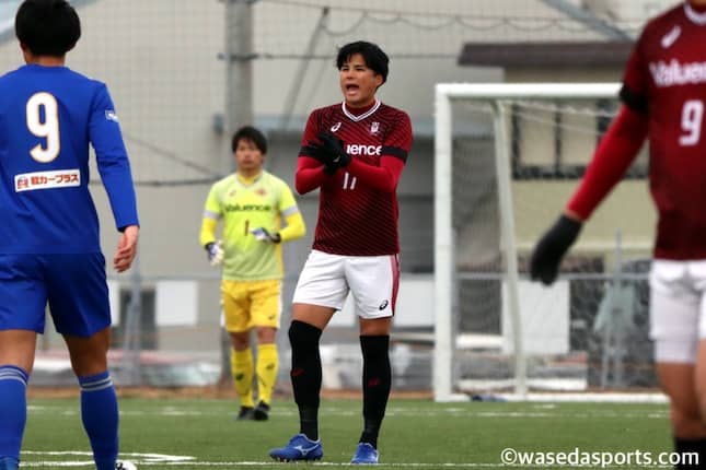 時間帯も時間帯で、みんな足が止まってきて相手に押し込まれる時間が長かったので、正直引退を覚悟したというか、このまま終わってしまうのかなとリアルな感情を持ってしまいました。でも、ここに立てなかったメンバーもいますし、今自分にできることは何かと考えた時に声を出して、4年生として最後まで早稲田の男を貫くという姿勢だけは保たなきゃいけない、下級生に見せなければいけないと思いました。途中から入ってきた平松とかすごく声がでていたし、生き生きして球際も激しかったし、山下もこれまでにないくらいスライディングして、足元の能力が高い選手なのですが、離脱したメンバーや4年生のためにという気持ちがこもったプレーが随所に出ていてすごく嬉しかったです。2失点目した後でも、下級生のひたむきな泥臭いプレーを見ることができて、自分も励まされるような時間でした。
