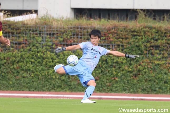 がっつり考えていました。どこまで言っていいのか分かりませんが、僕はプロになりたかったので、試合に出られるところ、可能な限り高い環境でサッカーに集中できるところがいいなと思っていて。その中で(候補として)早稲田が挙がりました。高校の時から各大学に何人キーパーがいて、どのような選手たちなのか調べていて、僕が高校2、3年生の時早稲田はキーパーが少なかったのです。そこで、チャンスがあるだろうなと思って早稲田に行きたいと伝えました。ただ、調べるうちにキーパーをスポーツ推薦で取るということが分かって。それが今考えると千田(奎斗、スポ4=横浜F・マリノスユース)でした。推薦で取るということはスタートで差があるんだろうなと感じてしまって。やはり早稲田やめようかなと考えた時期もありました。高校の時のスタッフに早稲田のOBの方がいらっしゃって、(うちの)キーパーが早稲田受けるからと伝えてしまっていたらしくて。受けない訳にはいかない上、その方のメンツを潰さないためにも手を抜くという選択肢はないという状況になりました。じゃあとりあえずやるかと思っていた中で、早稲田とご縁があって。