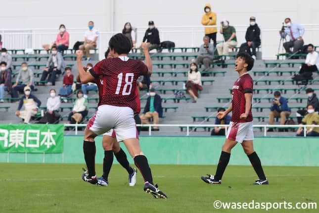専大戦でゴールを挙げた鈴木(写真中央)