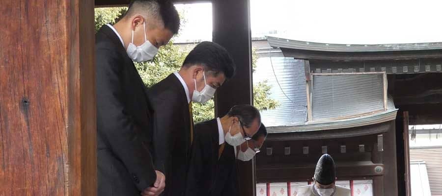 ソフトバンクは福岡市内の箱崎宮で必勝祈願を行った【写真:代表撮影】