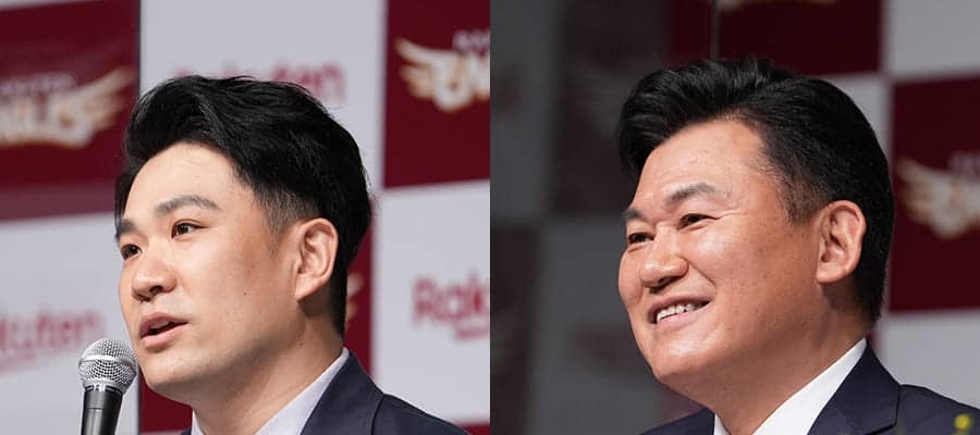 三木谷オーナーの大号令は迷うことなく「絶対獲れ」 8年ぶりの楽天復帰が決まった田中将大投手が30日、東京都内で入団会見を…