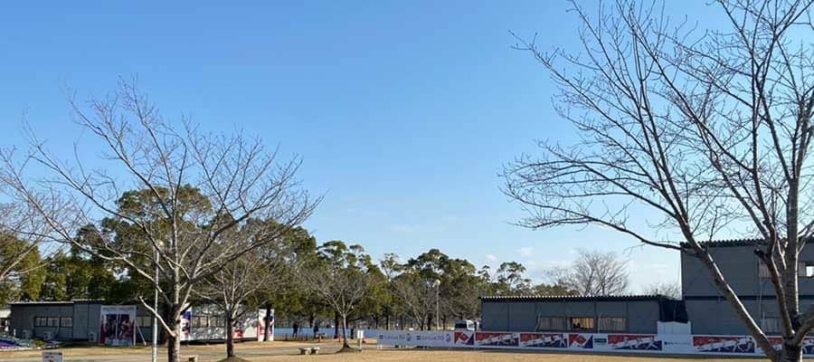 宮崎市の生目の杜運動公園。ソフトバンクの1、2軍が隣接した球場でキャンプを行う舞台は、例年なら球場間の芝生エリアにファンがごった返す。しかし、今年は景色が一変。静けさに包まれ、選手たちの声だけがよく響く。