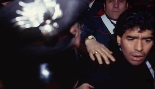 ナポリでの愛人クリスティアーナ・シナグラとの間にできた子の認知をめぐる揉め事が裁判沙汰になり、90年のワールドカップ・イタリア大会では準決勝で開催国イタリアに勝利したことから微妙な立場に置かれる。クラブを出たいとナポリの会長に打診すると、そのことが世間に知れてさらに評判を落とす。追い討ちをかけるようにマフィアとの親密な交際が暴露され、コカイン所持と売春の容疑がかけられる。メディアに叩かれ、ついにはドーピング検査でコカイン陽性反応が出て、アルゼンチンの当局に逮捕されてしまう。
