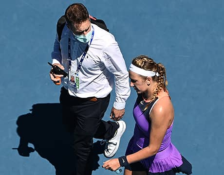 アザレンカは第2セット途中、熱中症に似たような症状が発生。息切れが激しくなり、呼吸器を使うため2度メディカル・タイム・アウトを取った。