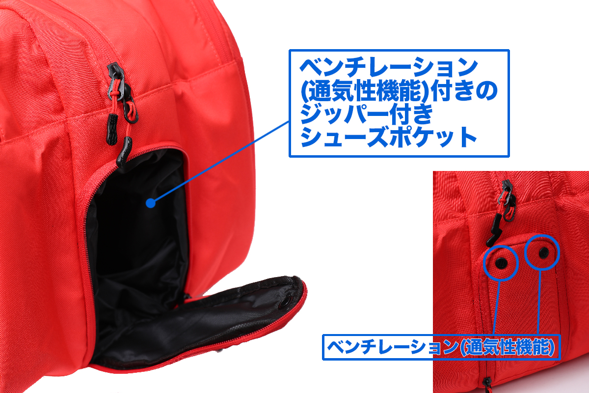 また、今回からベンチレーション(通気性機能)付きのジッパー付きシューズポケットも設けられている。スタイリッシュであることはもちろん、より使い勝手のいいバッグにもなっているということだ。
