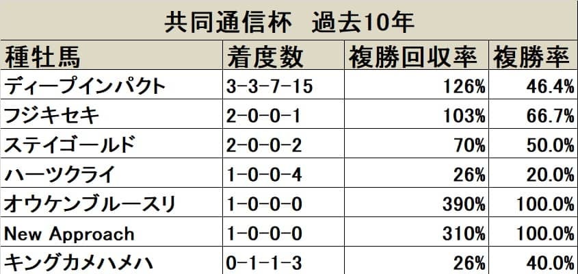 共同通信杯 種牡馬データ