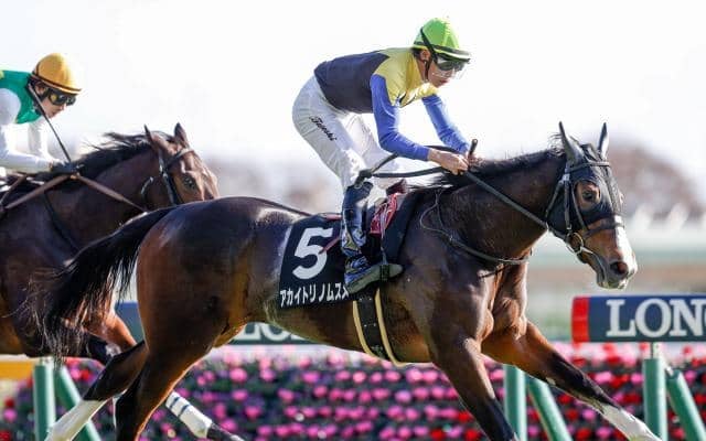 ディープインパクトとアパパネの仔で、2連勝で赤松賞を制したアカイトリノムスメ(牝3、美浦・国枝栄厩舎)は戸崎圭太騎手、京王杯2歳Sで5着だったリフレイム(牝3、美浦・黒岩陽一厩舎)は木幡巧也騎手。