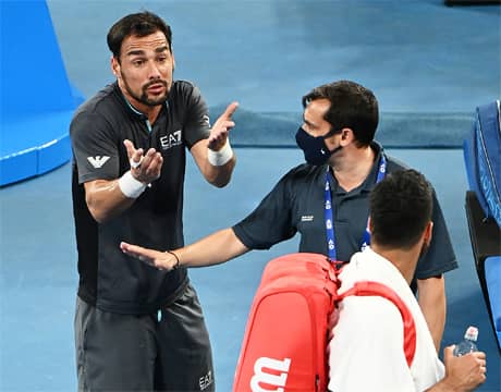 テニスの全豪オープン(オーストラリア/メルボルン、ハード、グランドスラム)は10日、男子シングルス2回戦が行われ、第16シードのF・フォニーニ(イタリア)が世界ランク78位のS・カルーソ(イタリア)を4-6, 6-2, 2-6, 6-3, 7-6 (14-12)のフルセットで破り、辛くも3回戦進出を果たした。試合直後に両者は口論となり、後味の悪い結末となった。