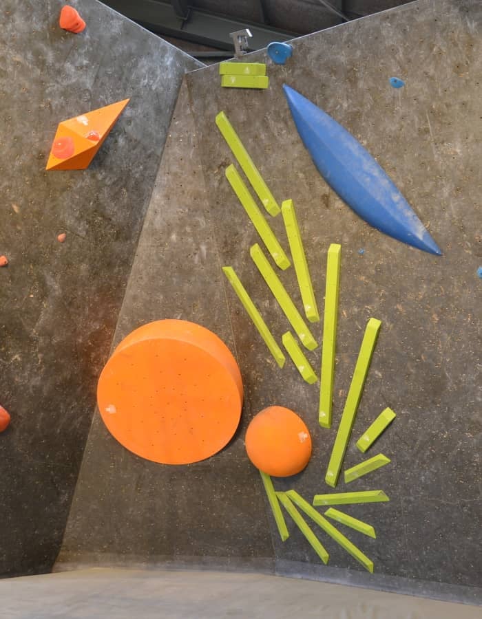 その見た目が興味をそそる、時長氏が経営するクライミングジム「MABOO」の課題。(2020年撮影)