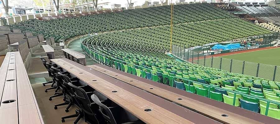 大規模改修工事で右翼スタンド名物の芝生席からクッション付き座席に変更する おしゃれなカウンターバーから生のライオンズを楽…