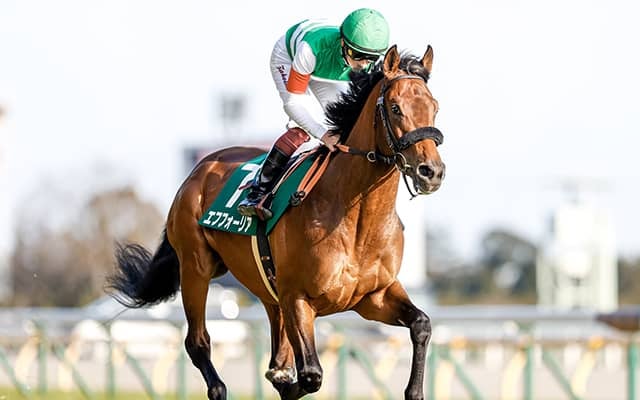 エフフォーリアは父エピファネイア、母ケイティーズハート、母の父ハーツクライ。従兄にアドマイヤムーンがいる血統。通算成績は3戦3勝。