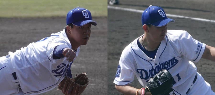 先発した中日・柳裕也(左)と2番手で登板した小笠原慎之介【写真:小西亮】