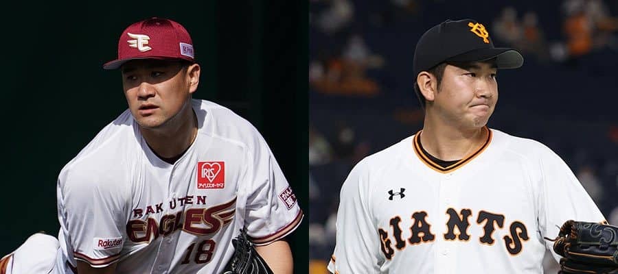 楽天・田中将大(左)と巨人・菅野智之【写真:荒川祐史、読売巨人軍提供】