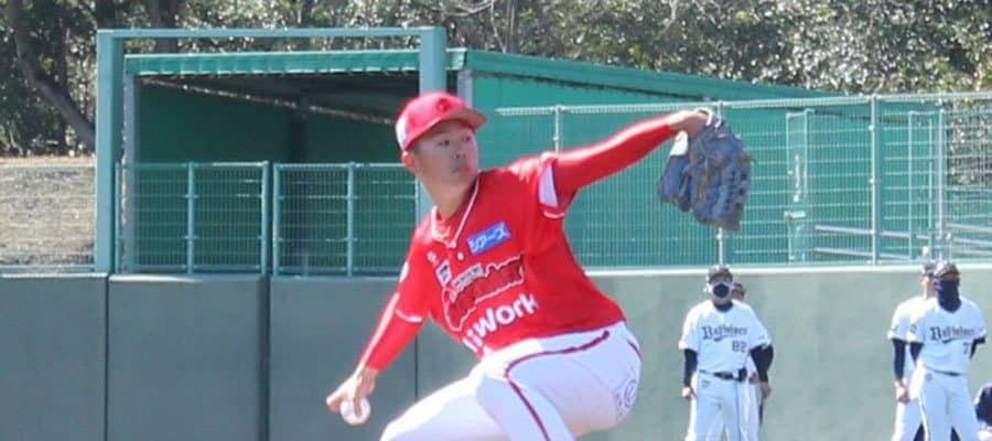 オリックス2軍との練習試合に登板した火の国サラマンダーズの佐野大河【写真:橋本健吾】