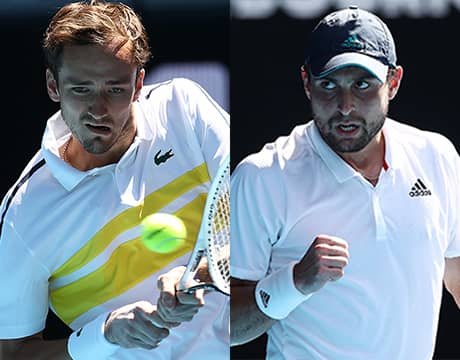 また、27歳のカラツェフは前週まで114位だったが、全豪オープンでは予選から出場し躍進。D・シュワルツマン(アルゼンチン)やF・オジェ アリアシム(カナダ)らを下し四大大会の本戦初出場ながらベスト4に駒を進め、世界ランク42位にまで上がった。