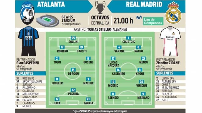 ジネディーヌ・ジダン率いるチームは、キャプテンのセルヒオ・ラモスやストライカーのカリム・ベンゼマ、エデン・アザール、ロドリゴ、エデル・ミリトン、マルセロ、フェデ・バルベルデを負傷によって欠く中、イタリアの戦術家ガスペリーニ率いる“難敵”と敵地で戦わなければならない。