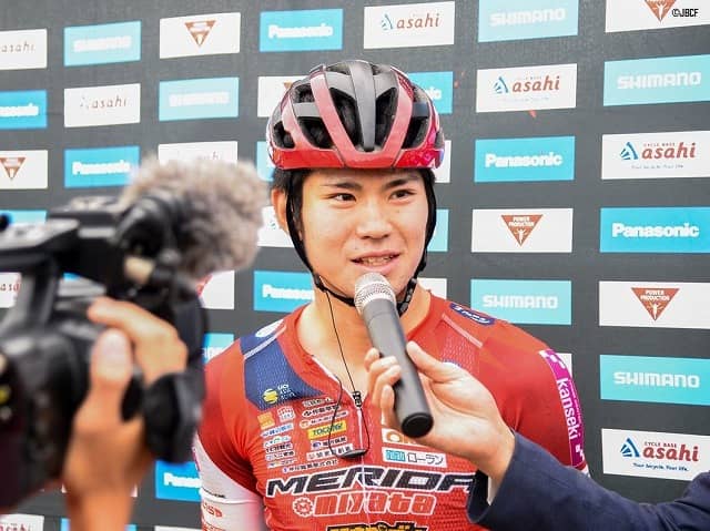 初勝利となった西村は表彰台で喜びを語った。上りスプリントは自身の得意なパターンであり、ここだと思えるタイミングで仕掛けることができ、勝利できたと。
