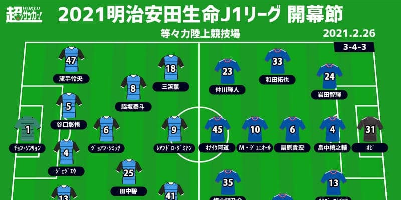 【明治安田生命J1リーグ開幕節】 2021年2月26日(金) 18:00キックオフ 川崎フロンターレ(昨季1位・83pt…