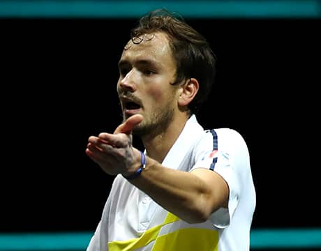 2月の全豪オープン(オーストラリア/メルボルン、ハード、グランドスラム)で準優勝を飾ったメドベージェフはこの試合、第1セットで8本のサービスエースを決めるもタイブレークの末に落とす。
