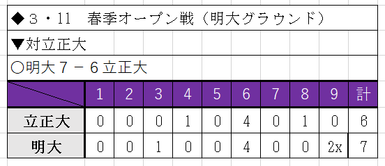 粘り強さで振り切った。強豪・立正大とのオープン戦は、互いに点を取り合う乱打戦に。一時は4点のリードを許すも、植田理久都…