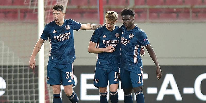 ラウンド32でPSVを下したオリンピアコスに対し、アーセナルは最前線にオーバメヤンを据えた[4-2-3-1]の布陣を採用。2列目に右からサカ、ウーデゴール、ウィリアンと並べた。