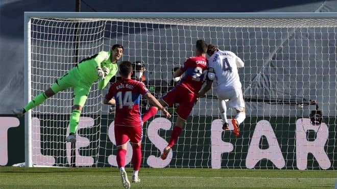 リーグ戦2試合勝ち星のないマドリーはセルヒオ・ラモスとエデン・アザールが復帰、キャプテンは先発出場した。