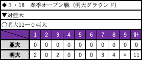 打線は1回、相手の暴投で先制すると3回には4番・上田希由翔内野手(国際2=愛産大三河)のオープン戦初となる本塁打で2点を追加。その後も得点を重ねていき計11得点と大量得点を挙げた。一方の投手陣も先発の磯村峻平投手(文4=中京大中京)を中心に4人で完封リレー。投打がかみ合う快勝となった。