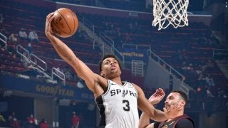 写真=Getty Images「楽しみながらプレーしている」現地3月19日に敵地で行われたキャバリアーズ戦で、スパーズの…