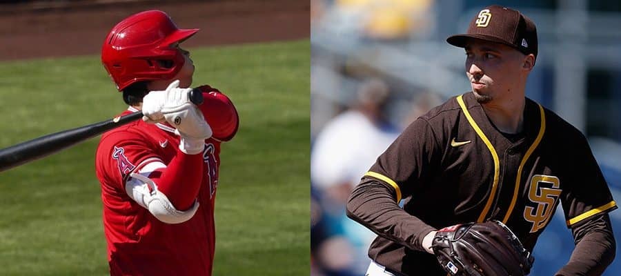 エンゼルス・大谷翔平(左)とパドレスのブレイク・スネル【写真:AP、Getty Images】