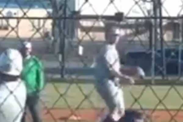大学生捕手が投じた衝撃の膝付きバズーカ送球に注目(画像はスクリーンショット)