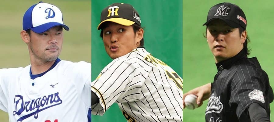 中日・福谷浩司、阪神・藤浪晋太郎、ロッテ・二木康太(左から)【写真:荒川祐史】