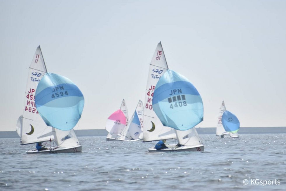 <前へ走らせる470級の2艇>