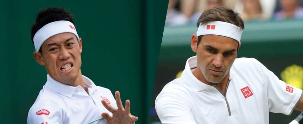 写真は2019年「ウィンブルドン」での錦織(左)とフェデラー(右)