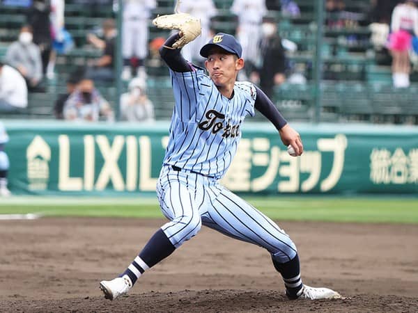 「大型左腕のわりに器用という印象です。コントロールがよく、(相手を)上から見下ろすようなマウンドさばきもいい。チェンジアップもうまく扱えているし、ほしいと思う球団はあるでしょうね。リリーフ登板した初戦(東海大甲府戦)で146キロを記録したみたいだけど、こんなにスピードが出るんだと思いました。もっと体ができて、常時140キロ中盤を投げられるようになれば、面白い投手になると思います」(パ・リーグスカウトA氏)
