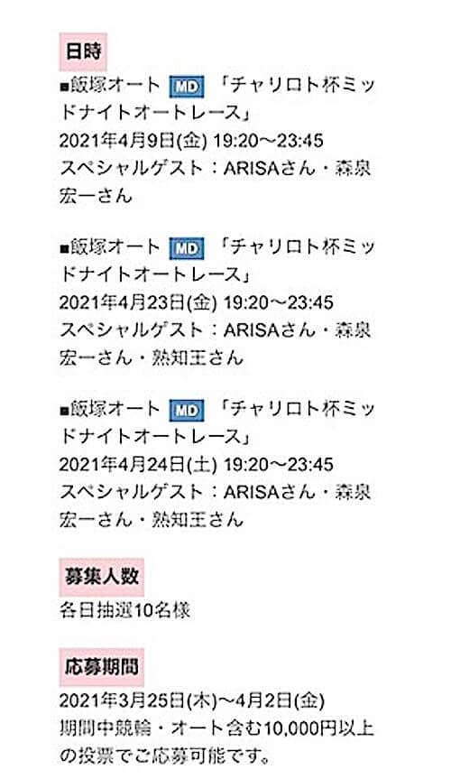 スッカリお馴染みとなりました、オートレースのオンライン観戦会は4月の募集が始まりました!