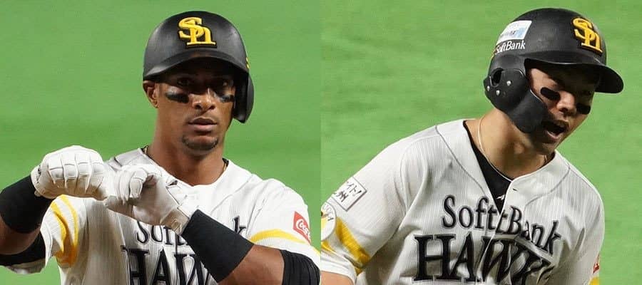 ソフトバンクのジュリスベル・グラシアル(左)と中村晃【写真:荒川祐史】