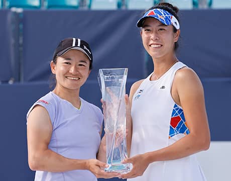 女子テニスのマイアミ・オープン(アメリカ/マイアミ、ハード、WTA1000)は4日、ダブルス決勝が行われ、第5シードの青山修子/ 柴原瑛菜組が第8シードのH・カーター(アメリカ)/ L・ステファニ(ブラジル)組を6-2, 7-5のストレートで下して初優勝を果たした。試合後に青山は「信じられない。さらに自信を得れた。グランドスラムでも今日のようなプレーをしたい」と語った。