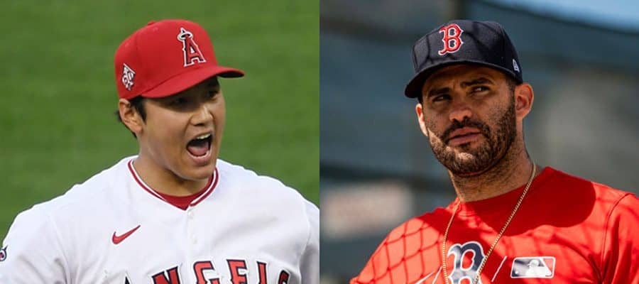 エンゼルス・大谷翔平(左)とレッドソックスのJD・マルティネス【写真:Getty Images】