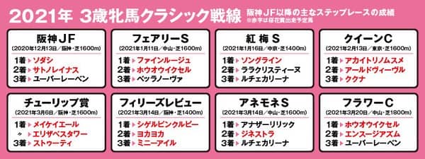 ただし、いずれも今回は阪神JF以来、およそ4カ月ぶりのレースとなる。その間のさらなる成長は見込めるものの、ぶっつけで大一番に臨むこととなり、レース勘が鈍った状況であれば、思わぬ取りこぼしがあっても不思議ではない。