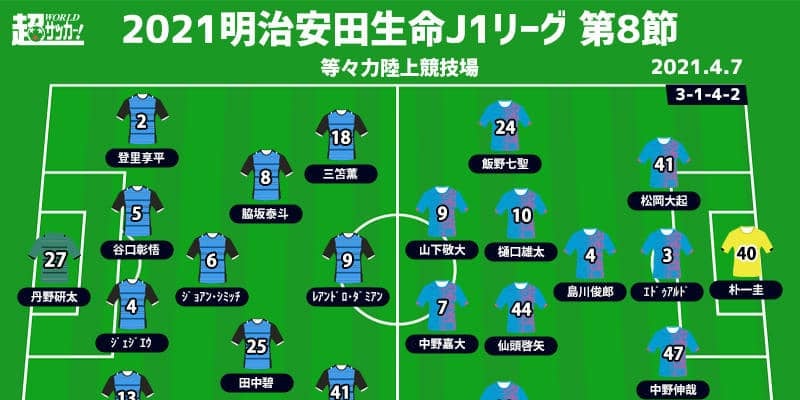 【明治安田生命J1リーグ第8節】 2021年4月7日(水) 19:00キックオフ 川崎フロンターレ(22pt/1位) v…