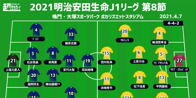【明治安田生命J1リーグ第8節】 2021年4月7日(水) 19:00キックオフ 徳島ヴォルティス(8pt/9位) vs…