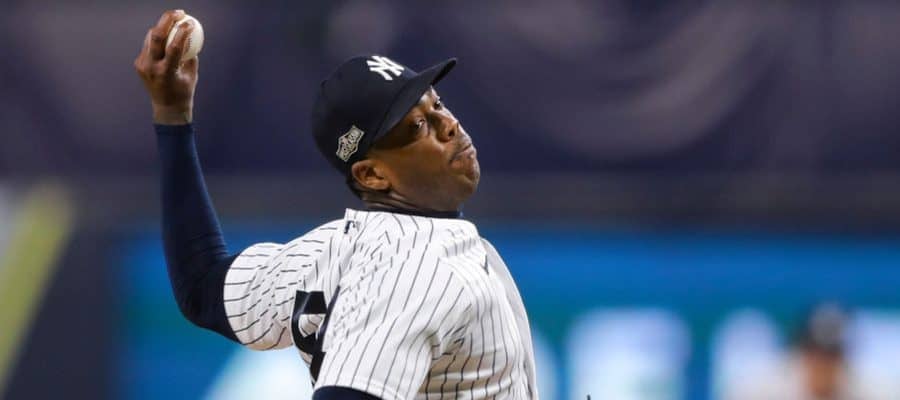 8日のオリオールズ戦に登板し、アウト3つ全てを三振で奪ったチャップマン