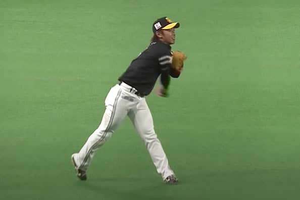 3回だった。先頭の野村が武田から三遊間へ痛烈な打球を放った。今宮は難しいハーフバウンドの打球を、身をよじらせながら逆シングルでキャッチ。すぐさま立ち上がると、ワンステップで矢のようなノーバウンド送球を一塁へと送り、間一髪のところでアウトにした。