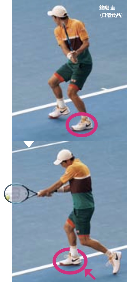 まずは左足に荷重→そして右足、とすることでリカバリーも早くなる (写真:錦織圭[日清食品])