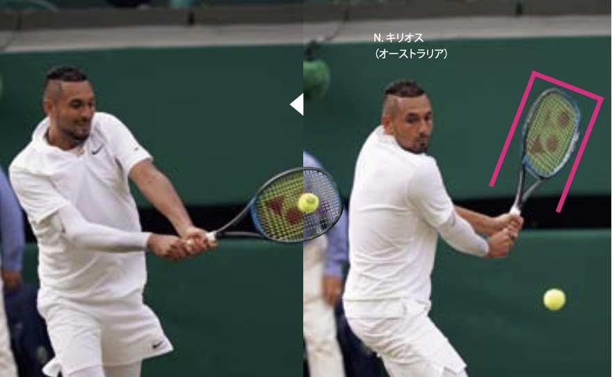フラットを打つ場合は、ラケットヘッドを立てると打ちやすい (写真:N.キリオス[オーストラリア])
