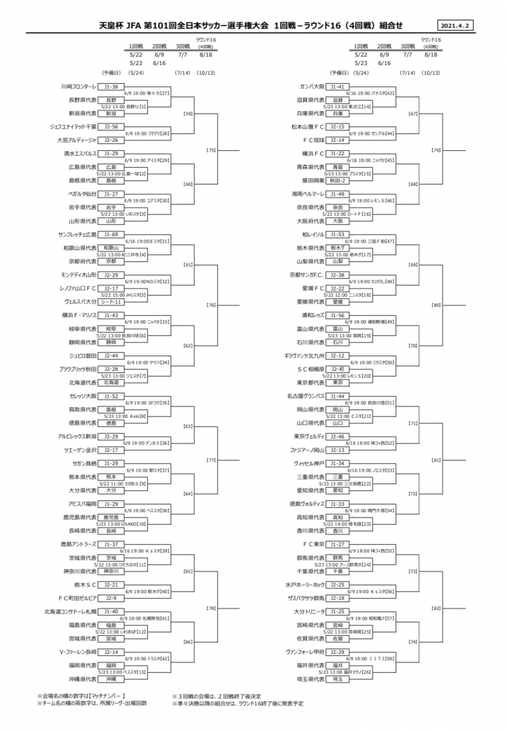 サッカー日本一を決める『天皇杯 JFA 第101回全日本サッカー選手権大会』の1~2回戦の組合せが決定し、日本サッカー協…