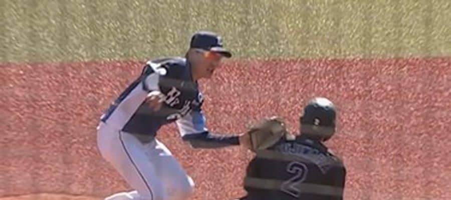 2回2死一塁の場面で、一塁走者のロッテ藤原が二盗を敢行。塁審は「セーフ」と判定した。しかし、リプレー検証の結果、判定は覆ってアウトに。スライディングした藤原の左足が二塁ベースに到達するよりも早く、源田は藤原の左肩付近をタッチしていた。