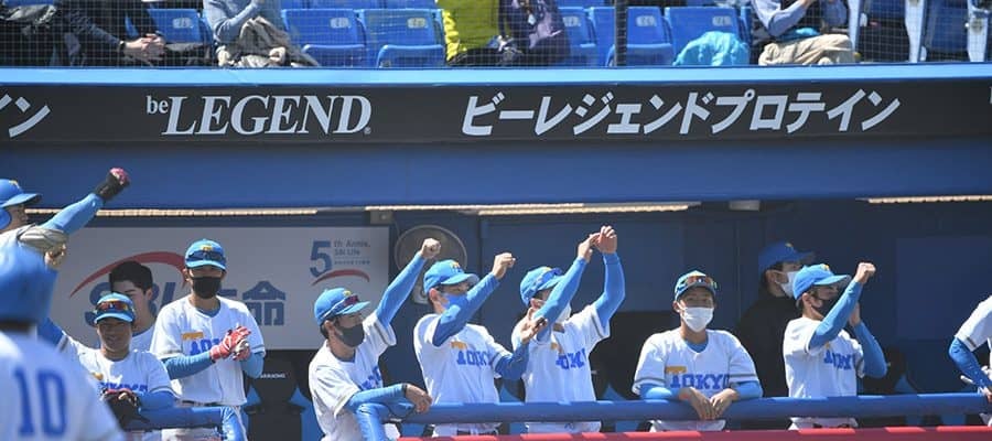 “本当の春”を最も楽しみにしていたのは、東大の阿久津怜生外野手(宇都宮)かもしれない。「去年はお客さんとしてスタンドでみていた」という3年生ルーキーは、昨夏までアメリカンフットボール部の選手だった。高校時代は硬式野球部に所属。アメフト選手として観戦した神宮球場での試合に感化され、野球部へ転部した。フレッシュトーナメントで既に神宮デビューは果たしていたものの、リーグ戦は初出場。早大との開幕戦で、「1番・右翼」に名を連ねた。