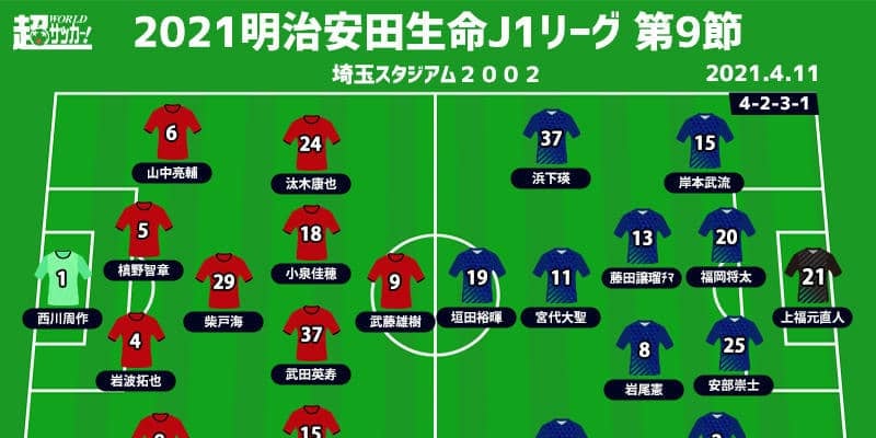 【明治安田生命J1リーグ第9節】 2021年4月11日(日) 16:00キックオフ 浦和レッズ(11pt/10位) vs…
