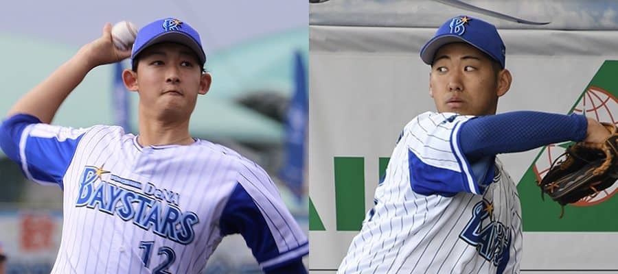 DeNA・阪口皓亮(左)と池谷蒼大【写真:小谷真弥】